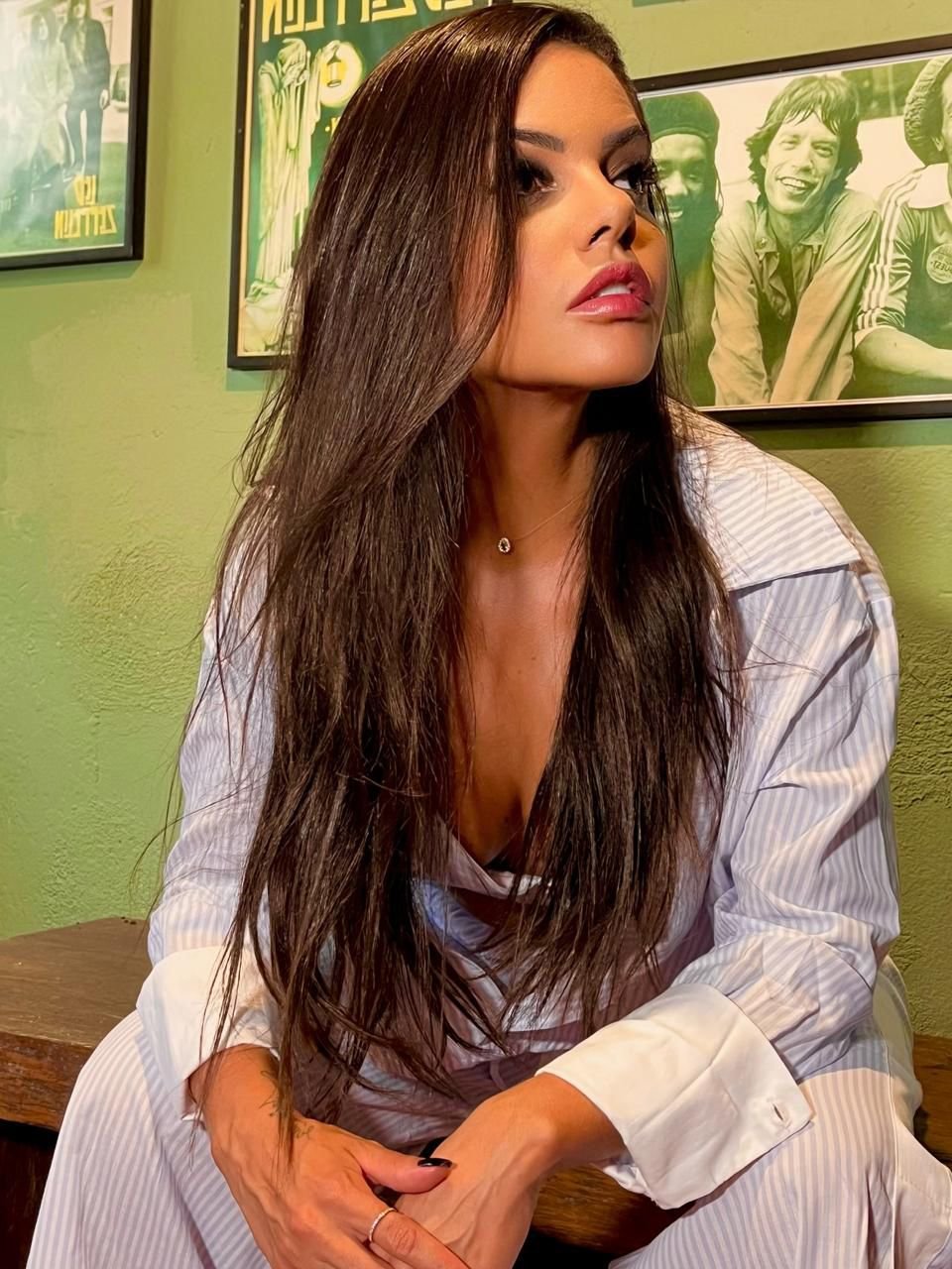 Conjunto de blusa + top + calça pantalona em tricoline com amarração na cintura.