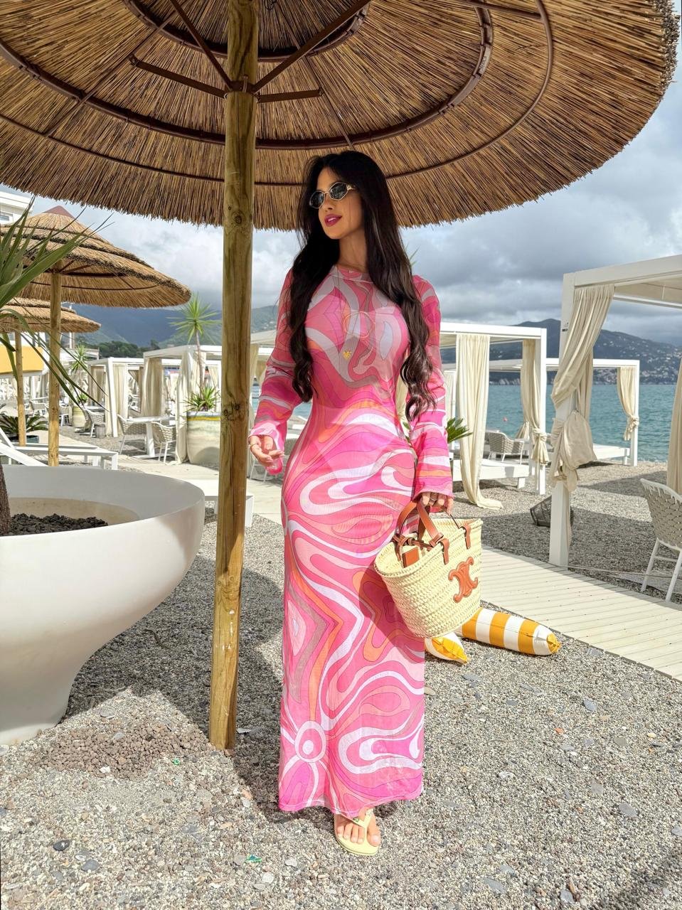 Acompanha saída em tule malha com abertura nas costas.